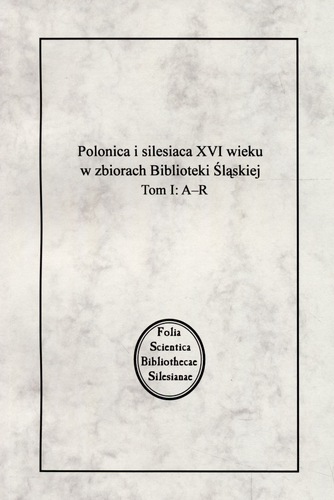 Polonica i silesiaca XVI wieku w zbiorach Biblioteki Śląskiej. T. 1, A-R / pod redakcją Weroniki Pawłowicz i Teresy Roszkowskiej
