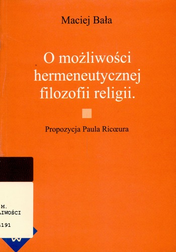 O możliwości hermeneutycznej filozofii religii : propozycja Paula Ricœura / Maciej Bała