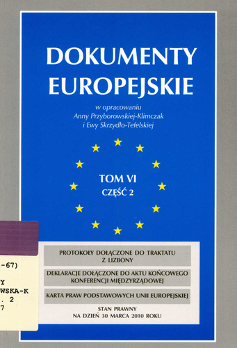 Dokumenty europejskie. T. 6, cz. 2, Protokoły dołączone do Traktatu z Lizbony, deklaracje dołączone do aktu końcowego konferencji międzyrządowej, Karta Praw Podstawowych Unii Europejskiej / w oprac. Anny Przyborowskeij-Klimczak i Ewy Skrzydło-Tefelskiej