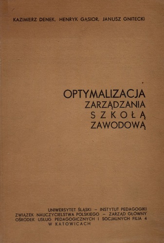 Optymalizacja zarządzania szkołą zawodową / Kazimierz Denek, Henryk Gąsior, Janusz Gnitecki