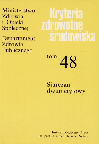 Siarczan dwumetylowy / tł. Tomasz Wasiela ; pod red. Janusza Indulskiego ; [Ministerstwo Zdrowia i Opieki Społecznej. Departament Zdrowia Publicznego]