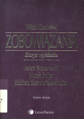Zobowiązania : zarys wykładu / Witold Czachórski, Adam Brzozowski, Marek Safian, Elżbieta Skowrońska-Bocian