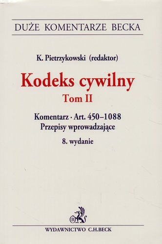 Kodeks cywilny. T. 2, Komentarz : art. 450-1088, przepisy wprowadzające / redaktor Krzysztof Pietrzykowski ; autorzy Zbigniew Banaszczyk, Adam Brzozowski, Marcin Kłoda, Jan Mojak, Leszek Ogiegło, Maksymilian Pazdan, Janusz Pietrzykowski, Wojciech Popiołek, Marek Safjan, Elżbieta Skowrońska-Bocian, Michał Warciński, Kamil Zaradkiewicz, Kazimierz Zawada